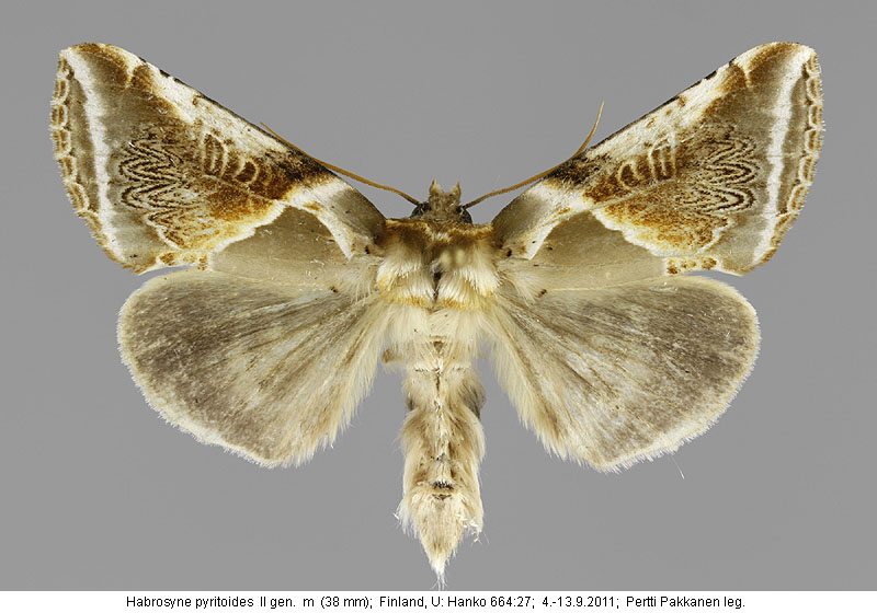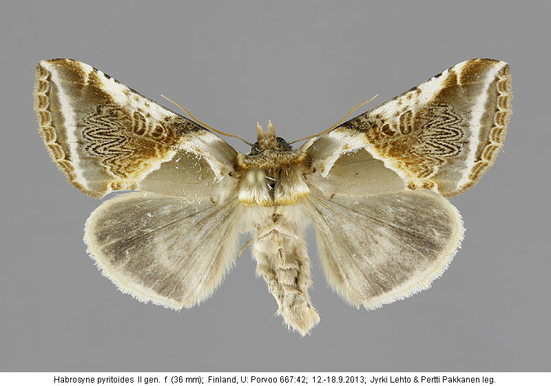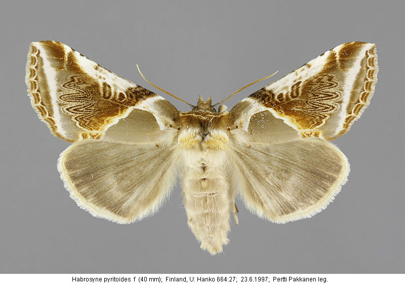 | Nykyinen voimassa oleva lajinimi - (Kullberg et. al. 2002): Habrosyne Hübner, 1821 pyritoides (Hufnagel, 1766) | ||||||||||