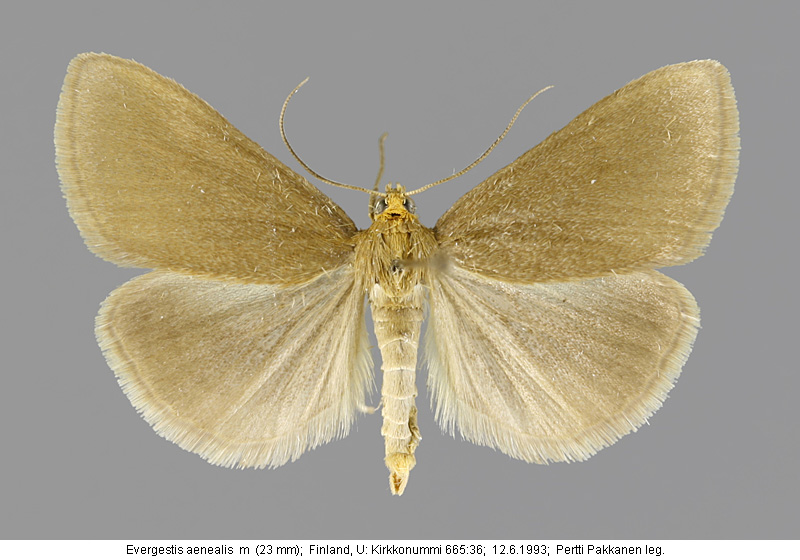Evergestis aenealis (Denis & Schiffermüller, 1775), rantakaalikoisa kuuluu heimoon koisat (Pyralidae)