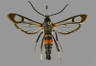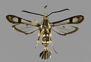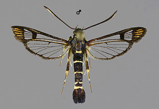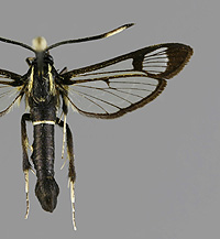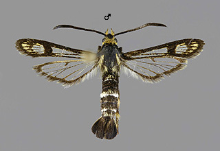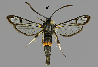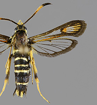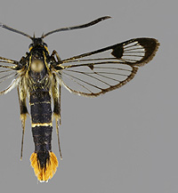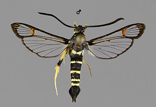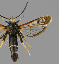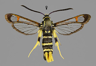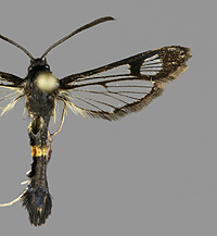 Synanthedon formicaeformis 'herzi' -muoto, pajulasisiipi |