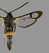 Chamaesphecia -lajiparin tunnistaminen takaruumiin alapuolelta |