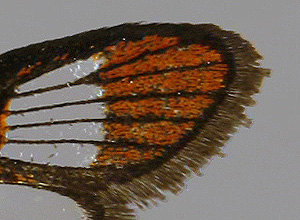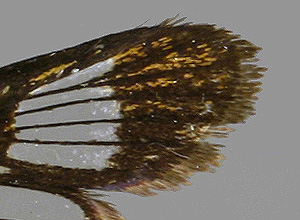P. hylaeiformis - 4 paksua poikkiraitaa (m) - 3 paksua poikkiraitaa (f) - uloimmassa ikkunassa 2 suonta |