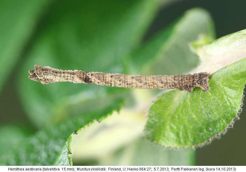| Nykyinen voimassa oleva lajinimi - (Kullberg et. al. 2002): Hemithea Duponchel, 1829 aestivaria (Hübner, 1799) | ||||||||||||||||||