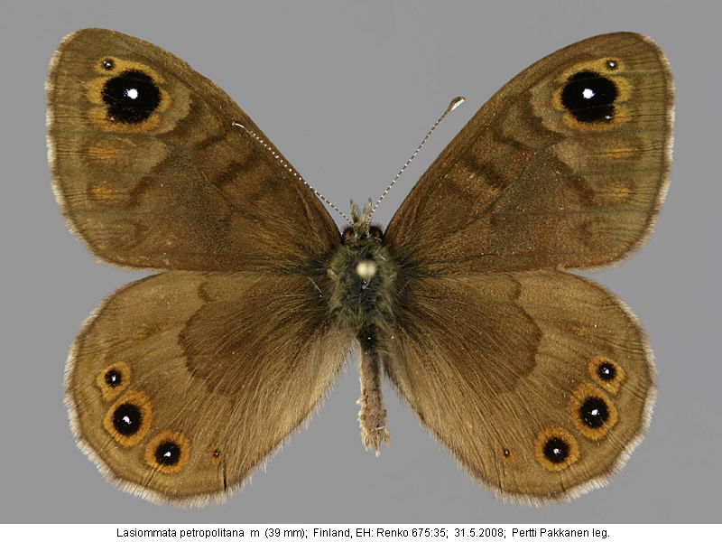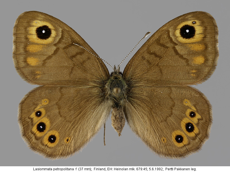 | Suomesta saaduiksi on ilmoitettu seuraavat muodot (alkuperäiset nimet): Pararge hiera f.geogr. ominata Krul. - (Valle 1935). - Suomessa elävä muoto. - Päämuoto (Keski-Eurooppa) on hieman isompi. - Päämuodolla etusiiven silmätäplän takana pari ruskeankeltaista täplää (naaraalla isommat). Pararge hiera ab. intermedia Nordstr. - (Valle 1935). - Eteläisimmässä Suomessa tavattava päämuotoa muistuttava muoto. Lasiommata petropolitana f.geogr. ominata Krulikowsky - (Sotavalta 1980). - Pohjois-Eurooppa. - Keltaiset kirjaukset vaatimattomia etelän yksilöihin verrattuna. Lasiommata petropolitana - (Mikkola 1983). - kuvataulu 1 rivi 6. - täplät lähes hävinneet. - EH: Pälkäne, 6.7.1962, V.Lepistö leg. Lasiommata petropolitana - (Mikkola 1983). - kuvataulu 1 rivi 6. - täplät päältä hävinneet. - V: Vihti, 6.6.1970, V.Hyyppä leg. | ||||||||||||||||||||||||||||||
