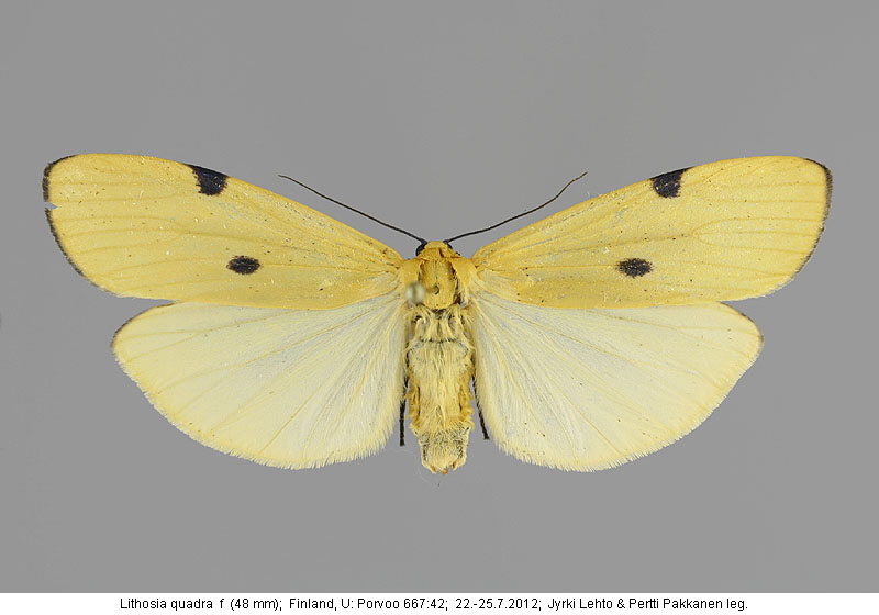 | Nykyinen voimassa oleva lajinimi - (Kullberg 2013): Lithosia Fabricius, 1798 quadra (Linnaeus, 1758) | ||||||||||||||