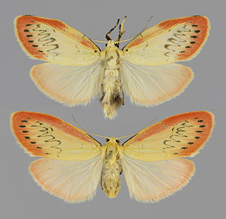 - Setina aurita Kaakkois-Ranska, Pohjois-Italia, Sveitsi, Itävalta, Etelä-Saksa