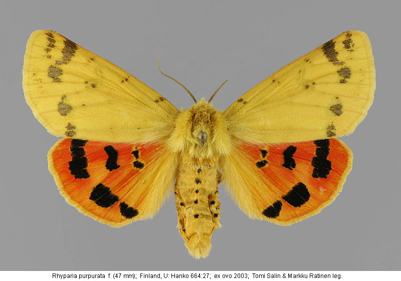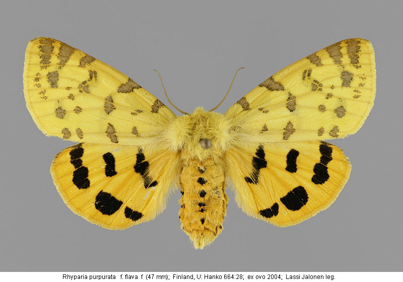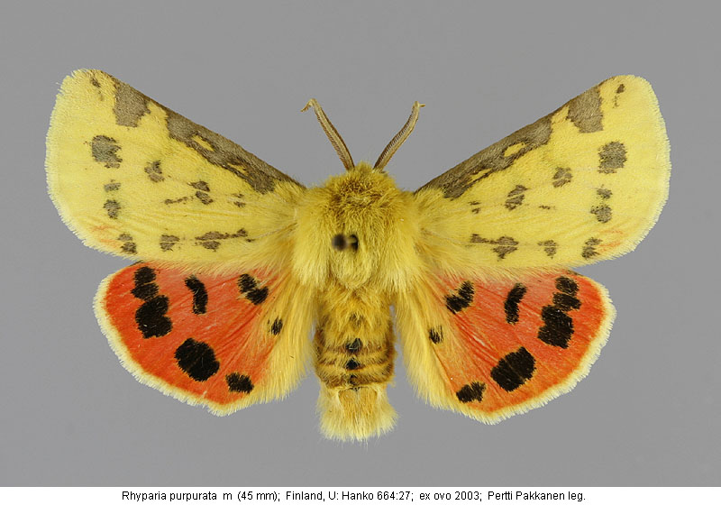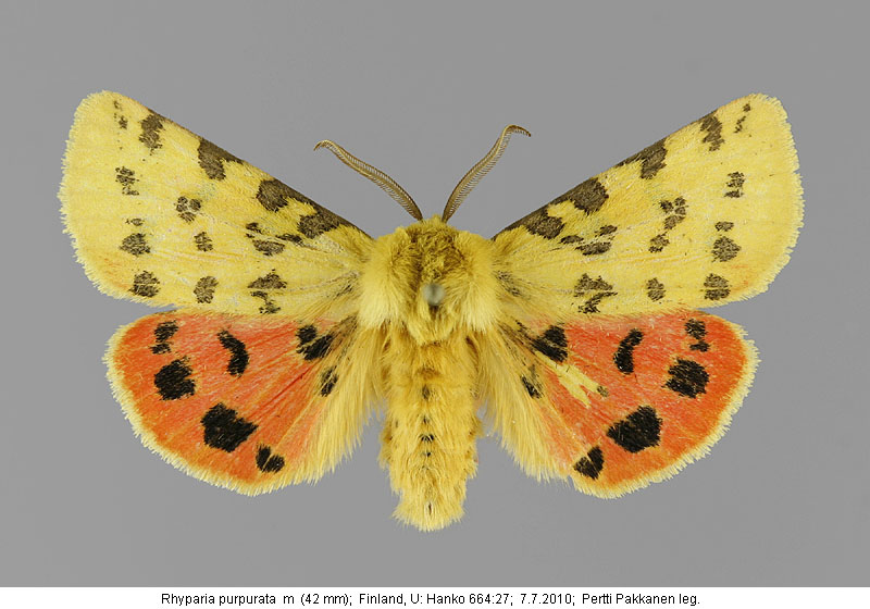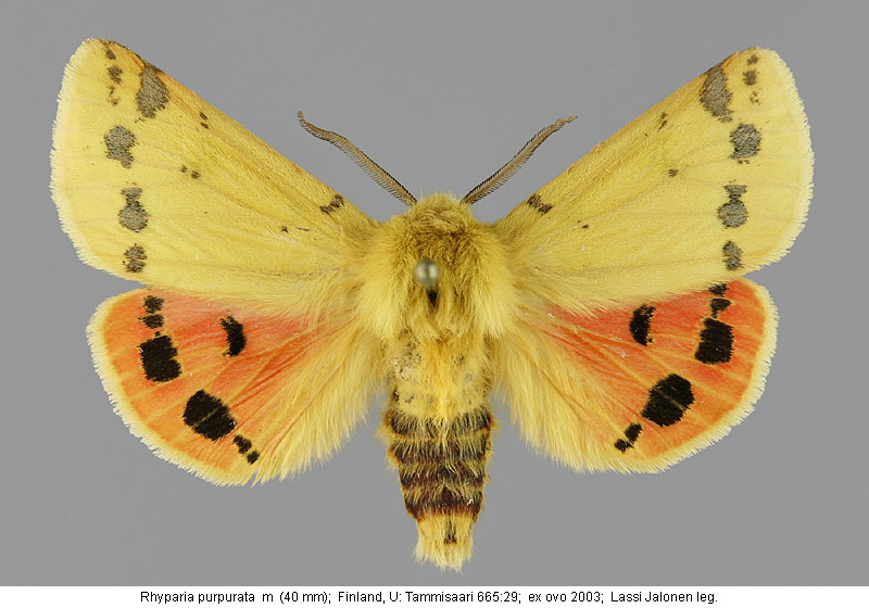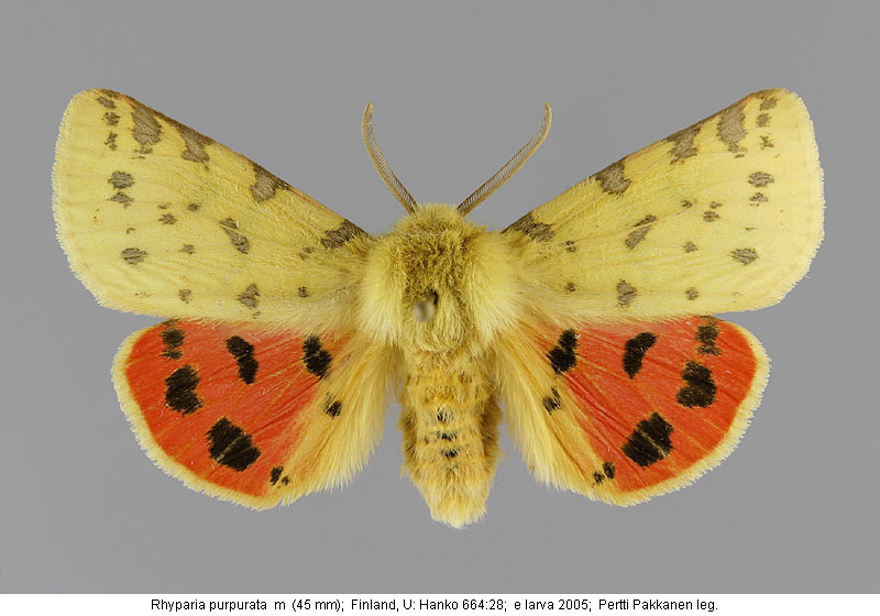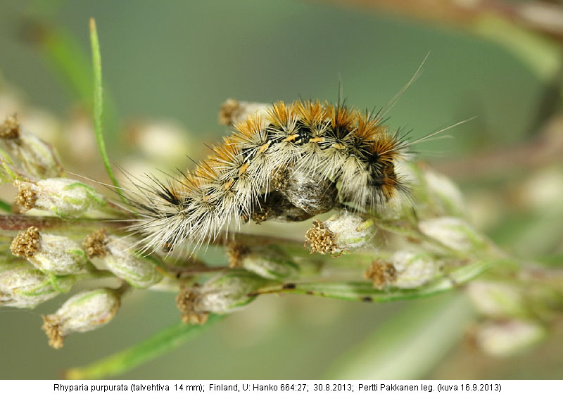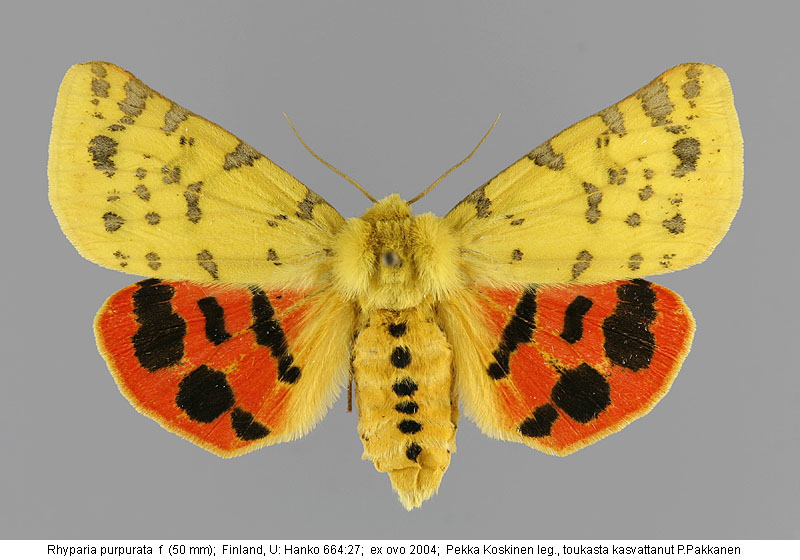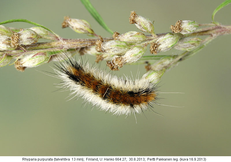 | Nykyinen voimassa oleva lajinimi - (Kullberg 2013): Rhyparia Hübner, 1820 purpurata (Linnaeus, 1758) | ||||||||||||||