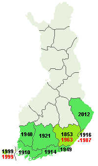 Aluemuutoksista on ollut mainintoja seuraavasti: