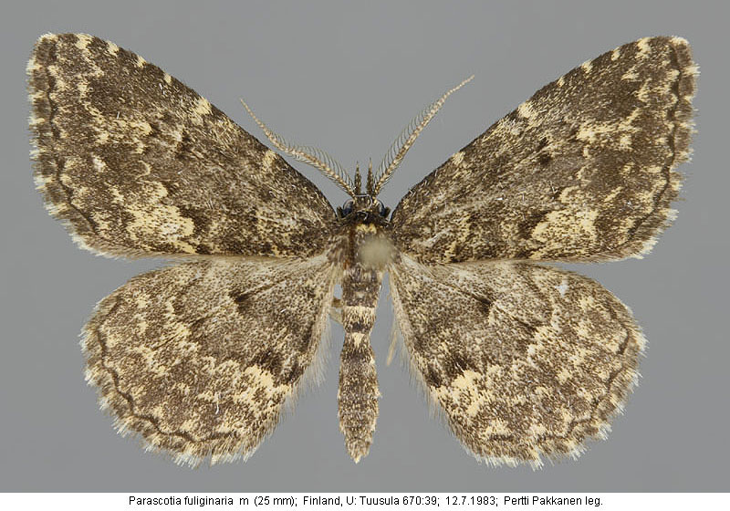| Nykyinen voimassa oleva lajinimi - (Kullberg 2013): Parascotia Hübner, 1825 fuliginaria (Linnaeus, 1761) | ||||||||||||||