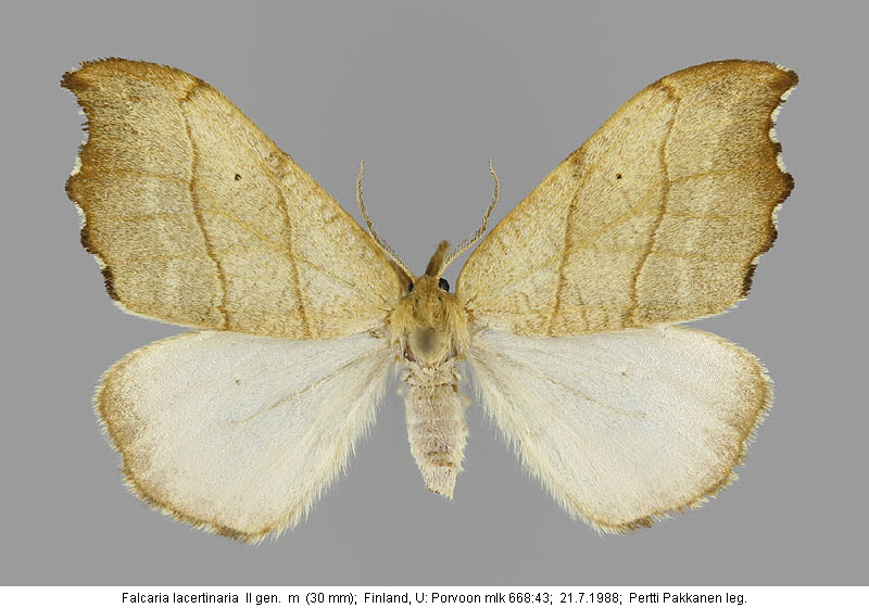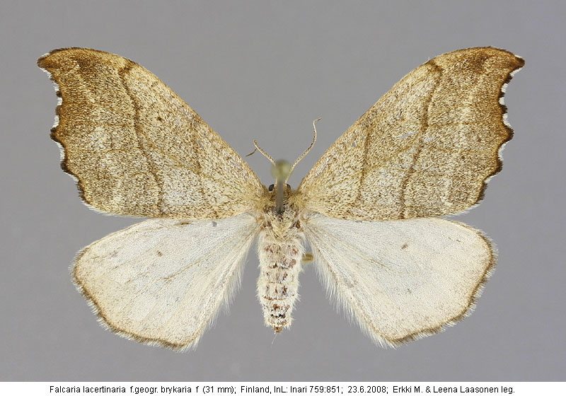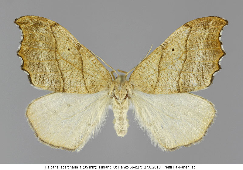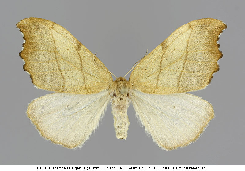 | Nykyinen voimassa oleva lajinimi - (Kullberg et. al. 2002): Falcaria Haworth, 1809 lacertinaria (Linnaeus, 1758) | ||||||||||||||||||