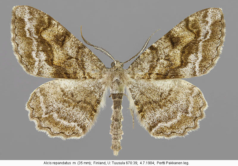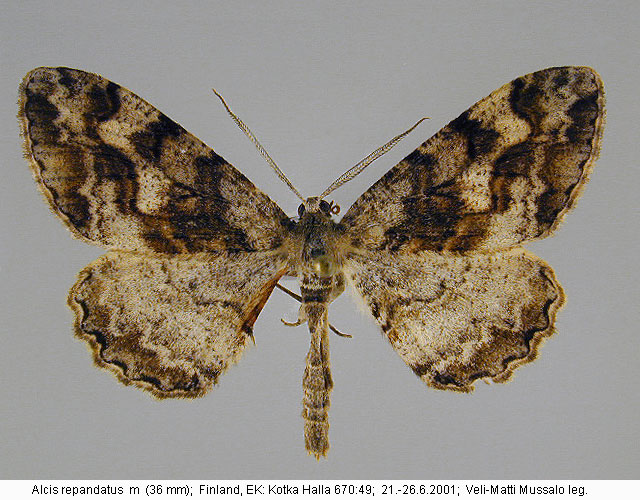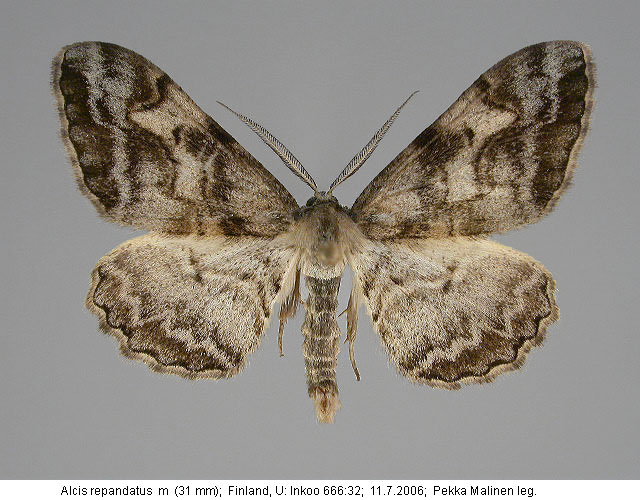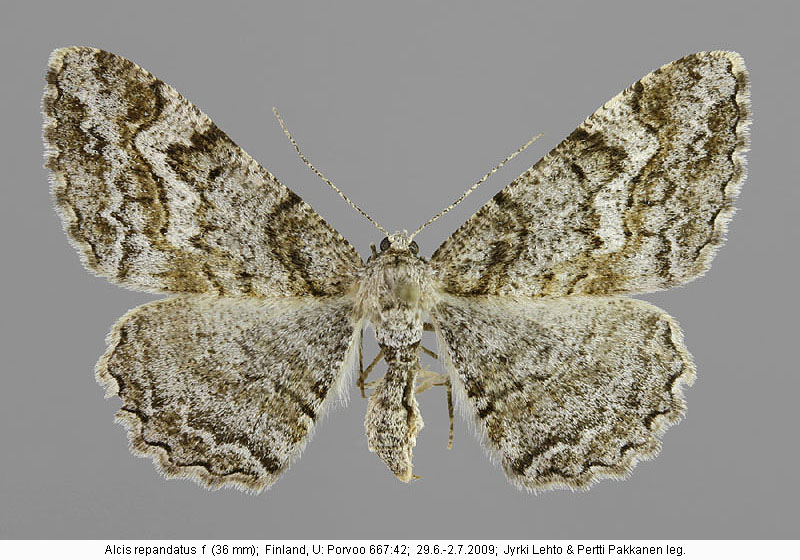 | Nykyinen voimassa oleva lajinimi - (Kullberg et. al. 2002): Alcis Curtis, 1826 repandatus (Linnaeus, 1758) | ||||||||||||||