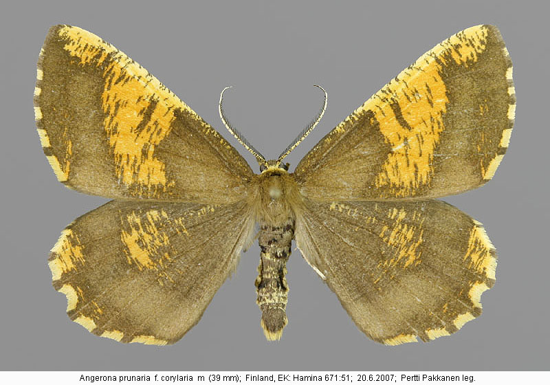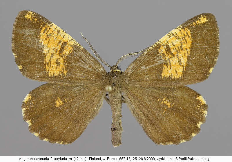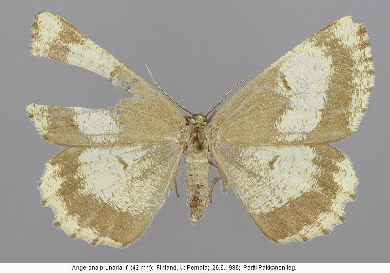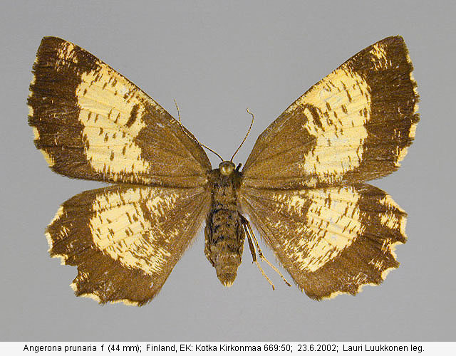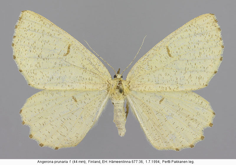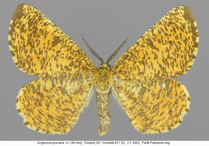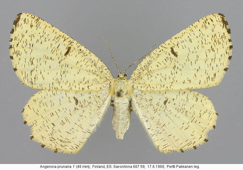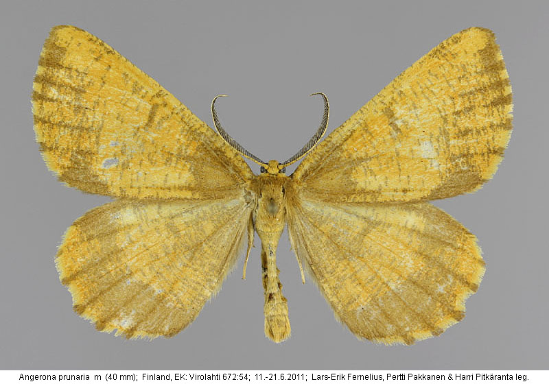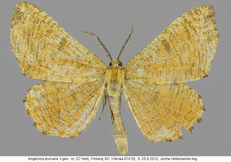 | Nykyinen voimassa oleva lajinimi - (Kullberg et. al. 2002): Angerona Duponchel, 1829 prunaria (Linnaeus, 1758) | ||||||||||||||