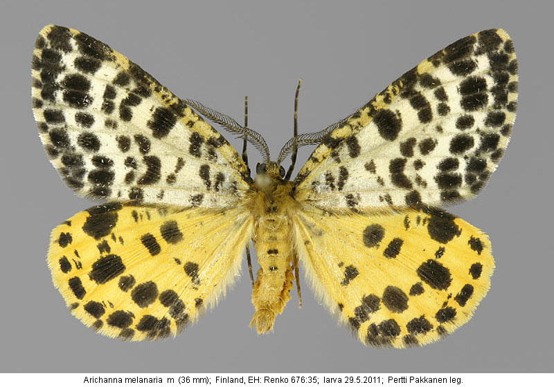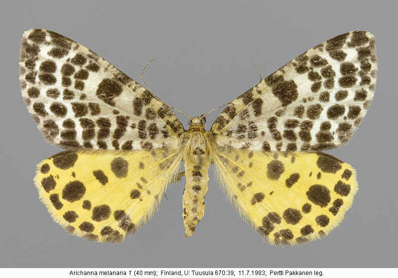 | Nykyinen voimassa oleva lajinimi - (Kullberg et. al. 2002): Arichanna Moore, 1868 melanaria (Linnaeus, 1758) | ||||||||||||||