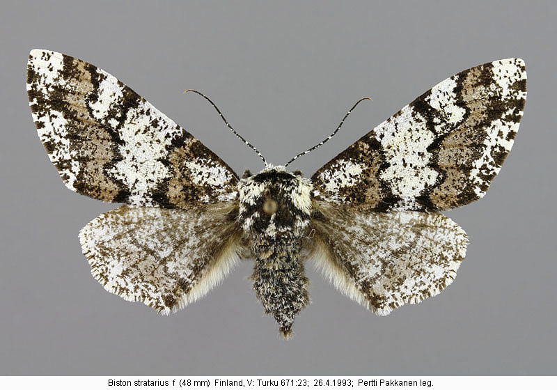 | Nykyinen voimassa oleva lajinimi - (Kullberg et. al. 2002): Biston Leach, 1815 stratarius (Hufnagel, 1767) | ||||||||||