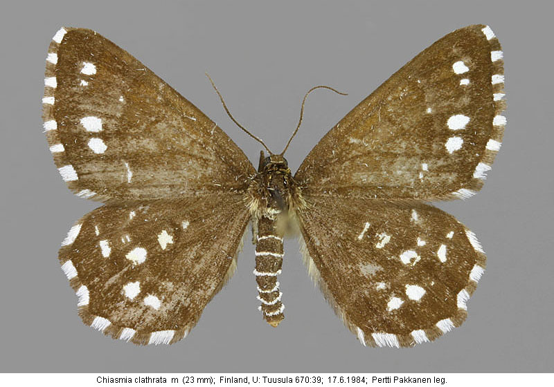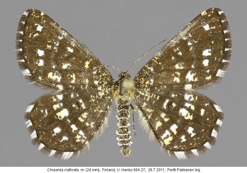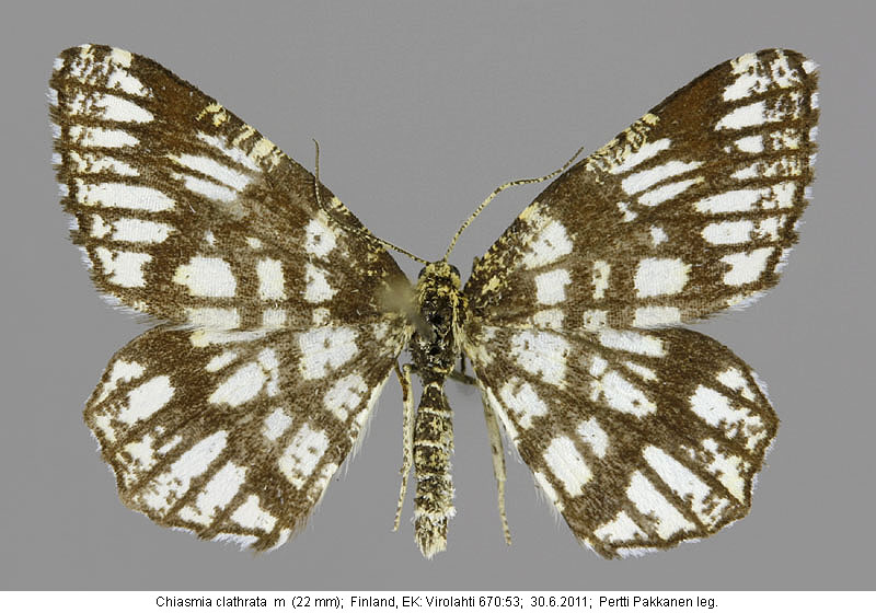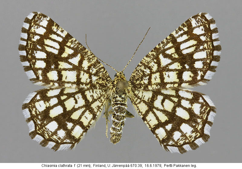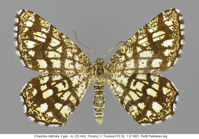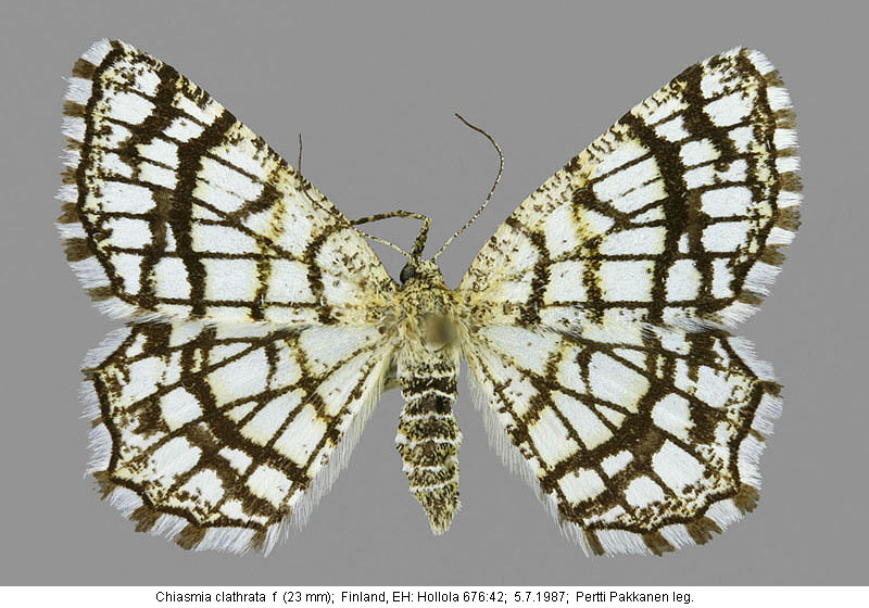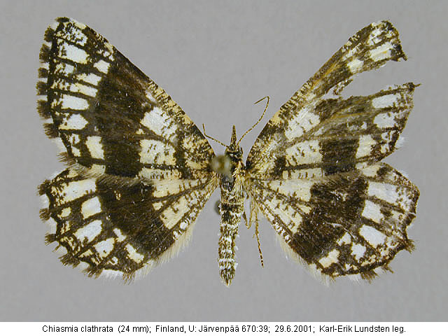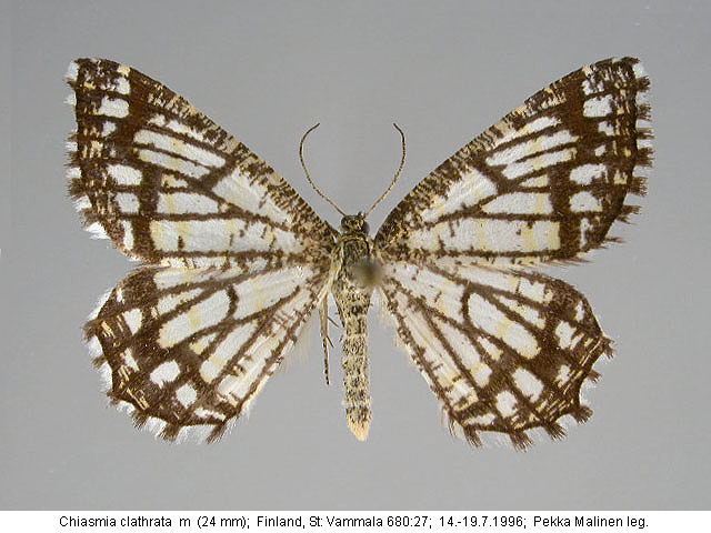 | Nykyinen voimassa oleva lajinimi - (Kullberg et. al. 2002): Chiasmia Hübner, 1823 clathrata (Linnaeus, 1758) | ||||||||||||||