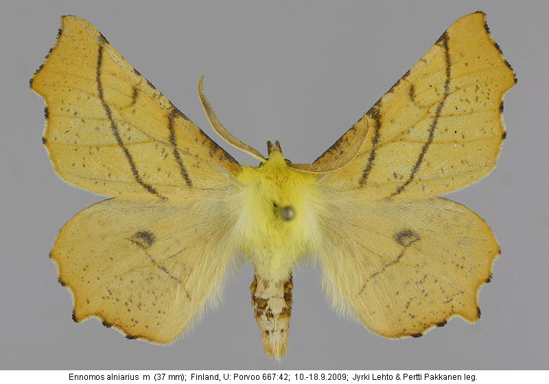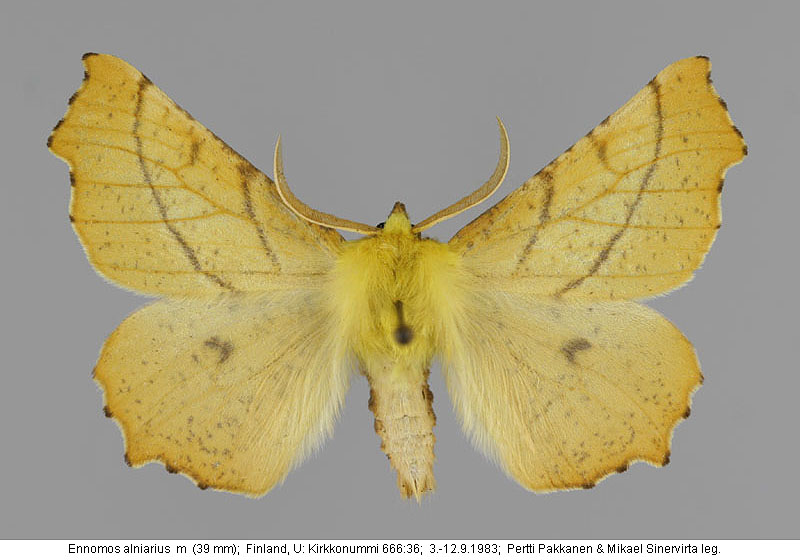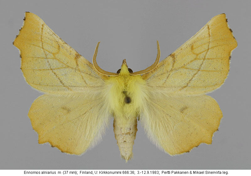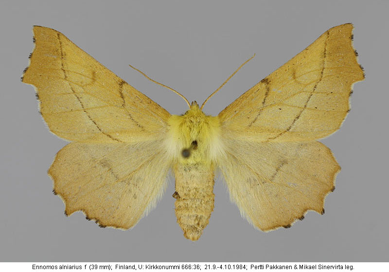 | Nykyinen voimassa oleva lajinimi - (Kullberg et. al. 2002): Ennomos Treitschke, 1825 alniarius (Linnaeus, 1758) | ||||||||||||||