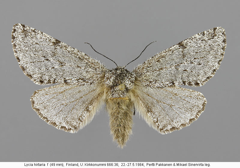 | Nykyinen voimassa oleva lajinimi - (Kullberg et. al. 2002): Lycia Hübner, 1825 hirtaria (Clerck, 1759) | ||||||||||||||