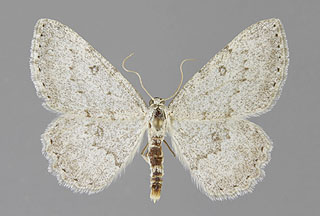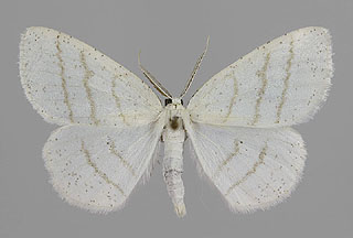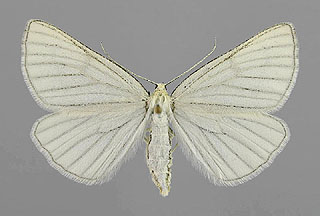 Cabera pusaria, Leppävalkomittari kuuluu valkomittareihin (Ennominae, Caberini)