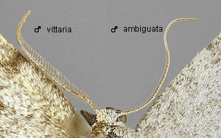 - koiraan tuntosarvet leveät, kaksoiskampahampaiset, vertaa C. ambiguata