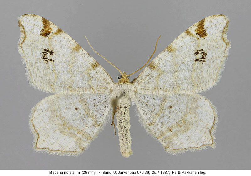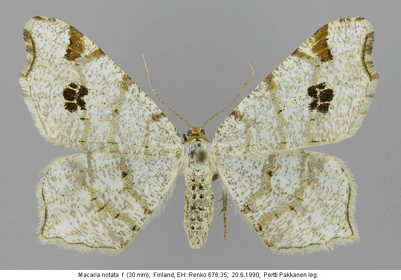 | Nykyinen voimassa oleva lajinimi - (Kullberg et. al. 2002): Macaria Curtis, 1826 notata (Linnaeus, 1758) | ||||||||||||||