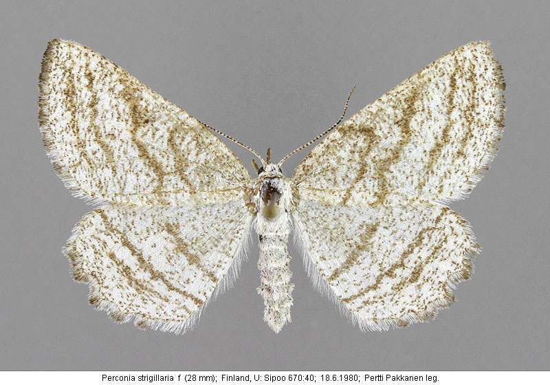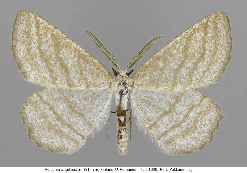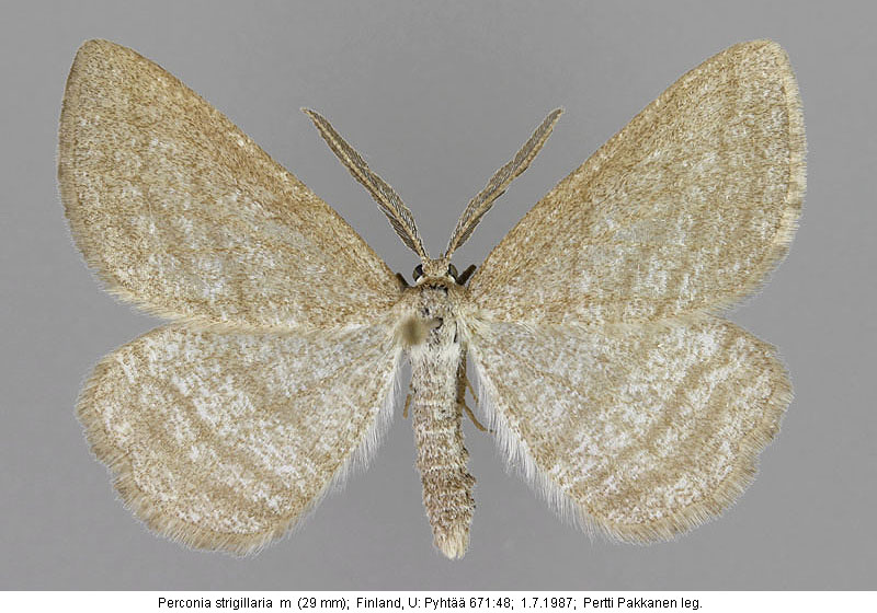 | Nykyinen voimassa oleva lajinimi - (Kullberg et. al. 2002): Perconia Hübner, 1823 strigillaria (Hübner, 1787) | ||||||||||||||