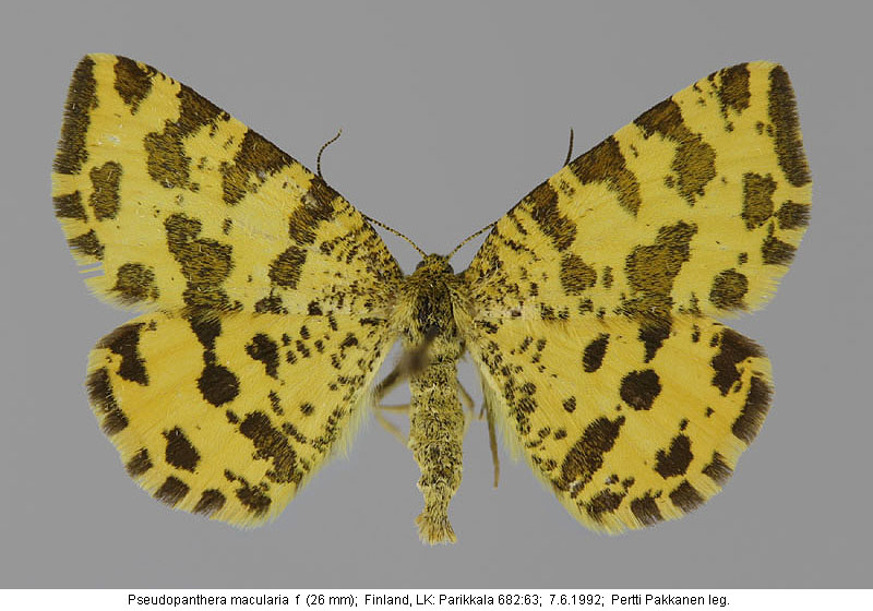 | Nykyinen voimassa oleva lajinimi - (Kullberg et. al. 2002): Pseudopanthera Hübner, 1823 macularia (Linnaeus, 1758) | ||||||||||||||
