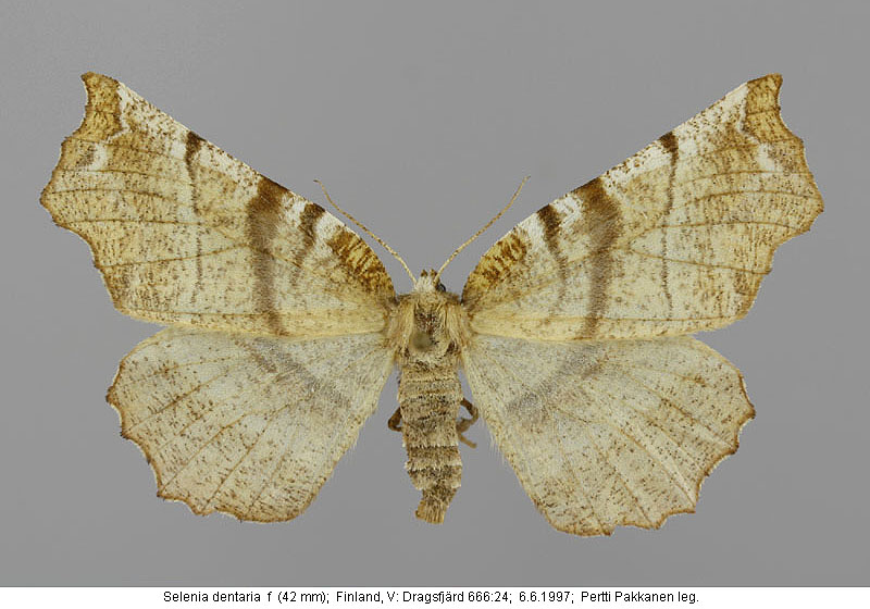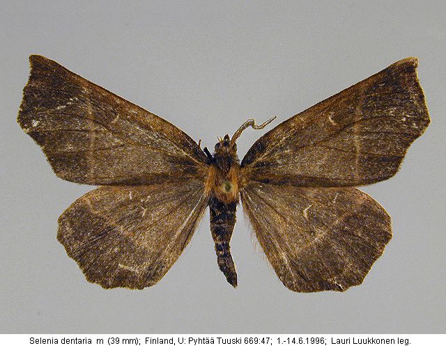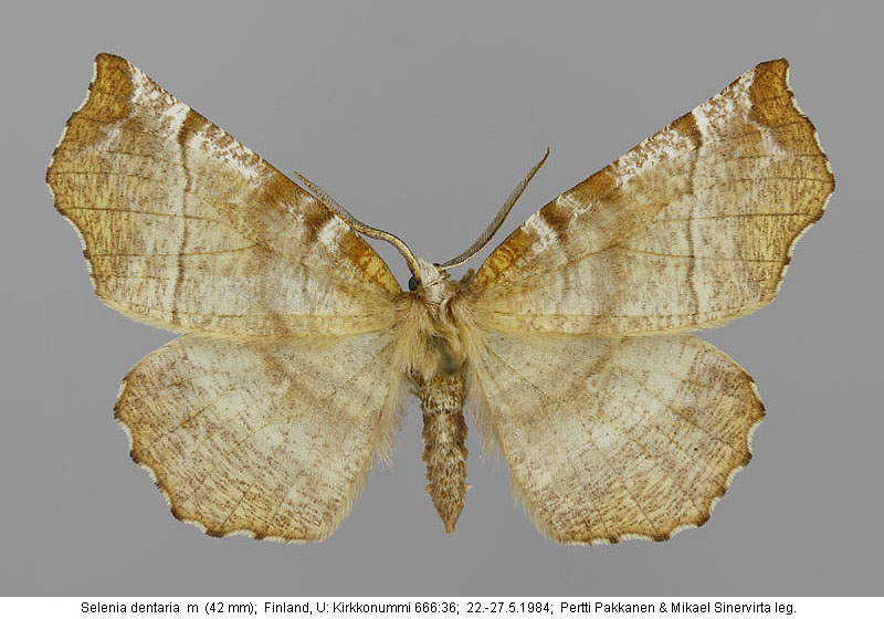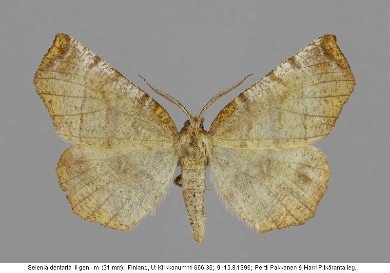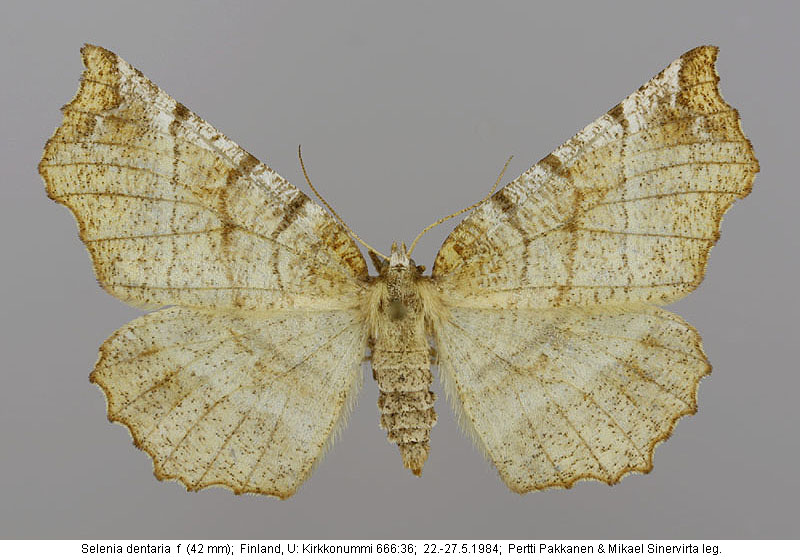 | Nykyinen voimassa oleva lajinimi - (Kullberg et. al. 2002): Selenia Hübner, 1823 dentaria (Fabricius, 1775) | ||||||||||||||