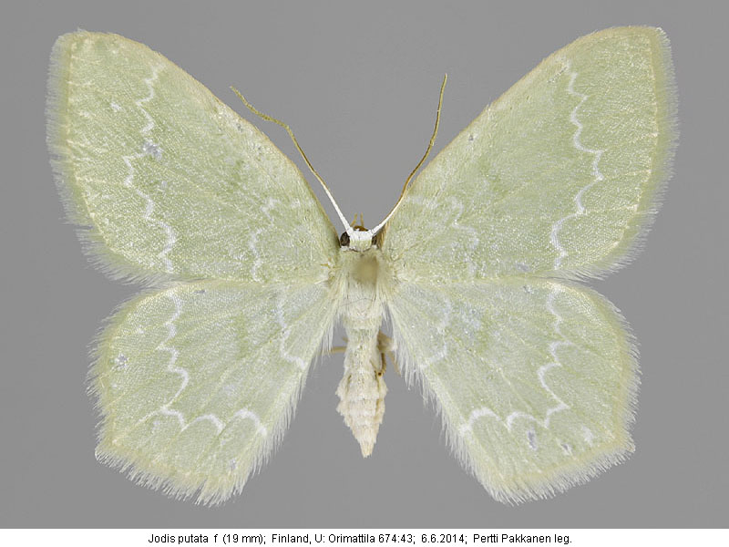 | Nykyinen voimassa oleva lajinimi - (Kullberg et. al. 2002): Jodis Hübner, 1823 putata (Linnaeus, 1758) | ||||||||||||||||||