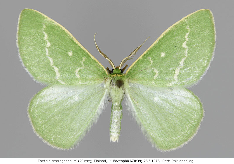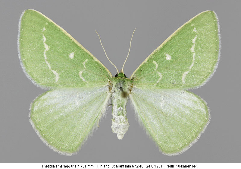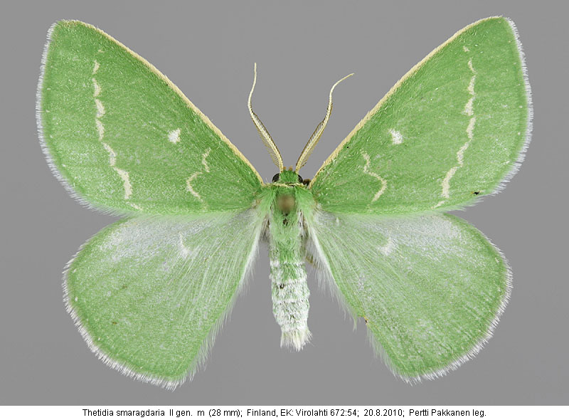 | Nykyinen voimassa oleva lajinimi - (Kullberg et. al. 2002): Thetidia Boisduval, 1840 smaragdaria (Fabricius, 1787) | ||||||||||||||||||