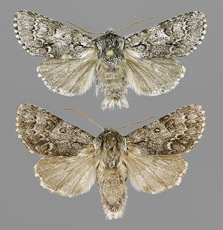 Acronicta auricoma, silmäiltayökkönen kuuluu alaheimoon iltayökköset (Noctuidae, Acronictinae)