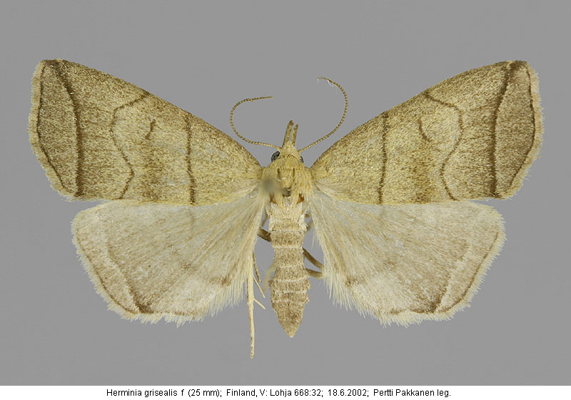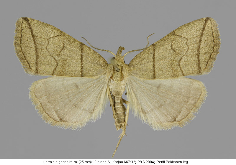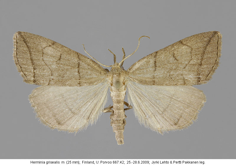 | Nykyinen voimassa oleva lajinimi - (Kullberg 2013): Herminia Latreille, 1802 grisealis (Denis & Schiffermüller, 1775) | ||||||||||||||