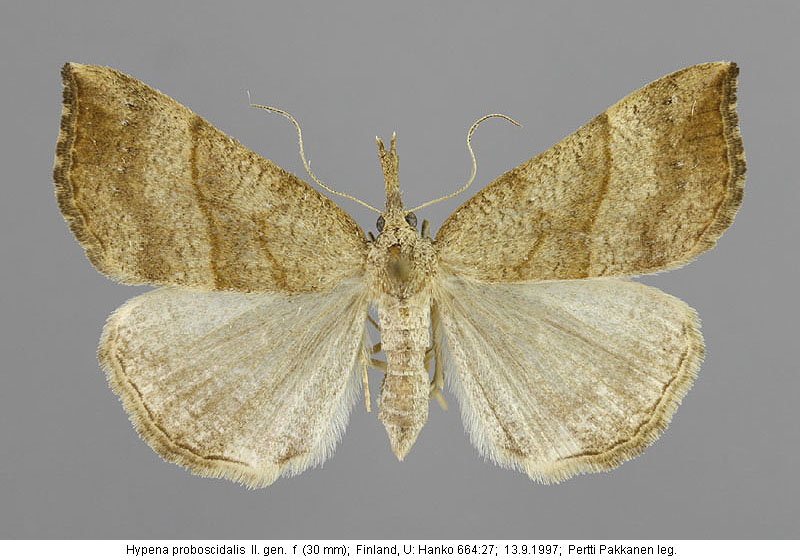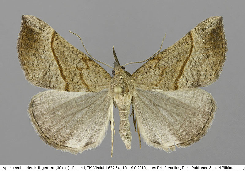 | Nykyinen voimassa oleva lajinimi - (Kullberg et. al. 2002): Hypena Schrank, 1802 proboscidalis (Linnaeus, 1758) | ||||||||||||||