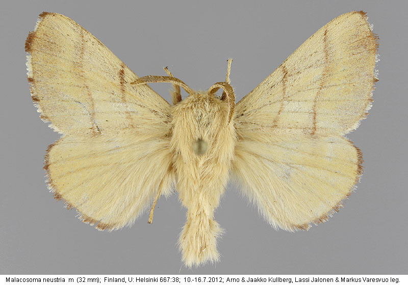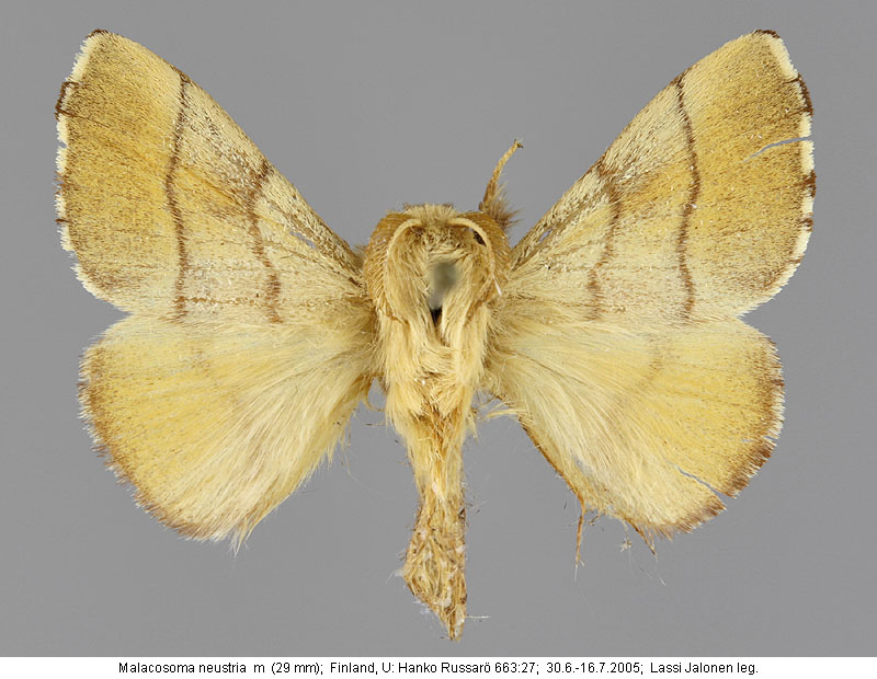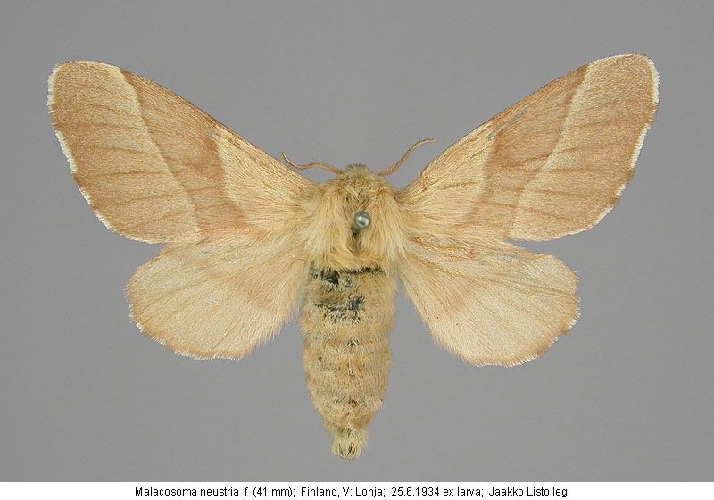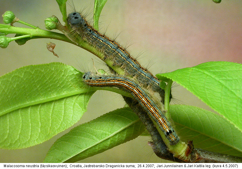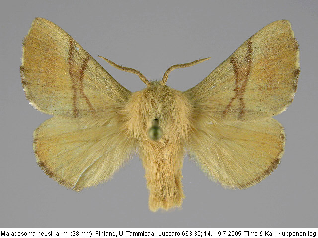 | Nykyinen voimassa oleva lajinimi - (Kullberg et. al. 2002): Malacosoma Hübner, 1820 neustria (Linnaeus, 1758) | ||||||||||||||||||||||