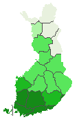 | Maakuntien havaintovuodet | Havaintoruutujen (10 x 10 km) tiheys maakunnittain -1997 | |||||||||||||
