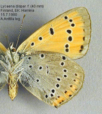 | Nykyinen voimassa oleva lajinimi - (Kullberg et. al. 2002): Lycaena Fabricius, 1807 dispar (Haworth, 1809) | ||||||||||||||||||