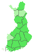 | Maakuntien havaintovuodet | Havaintoruutujen (10 x 10 km) tiheys maakunnittain -1997 | |||||||||||||
