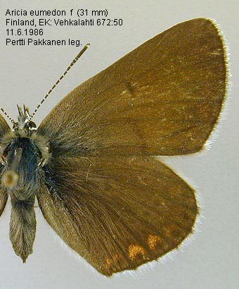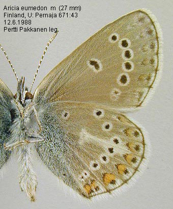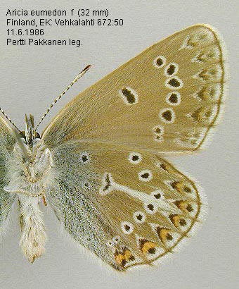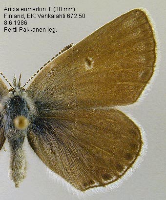 | Nykyinen voimassa oleva lajinimi - (LTK 2009): Plebeius Kluk, 1780 eumedon (Esper, 1780) | ||||||||||||||||||||||||||
