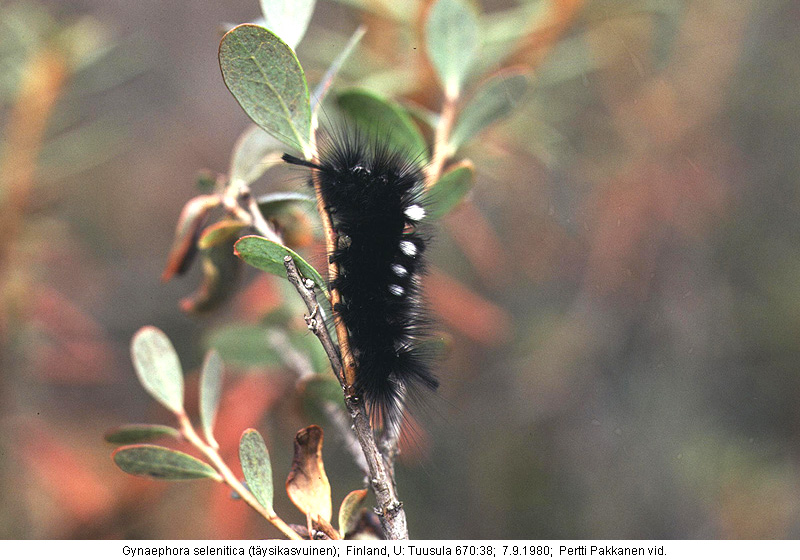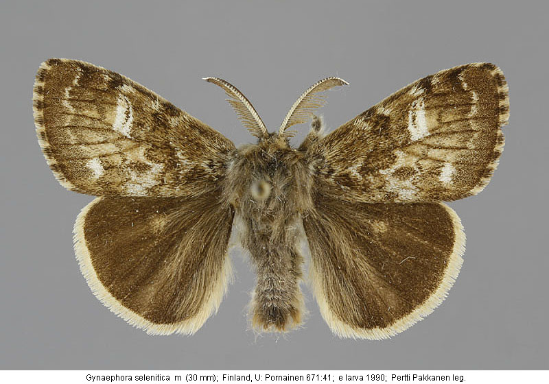 | Nykyinen voimassa oleva lajinimi - (Kullberg et. al. 2002): Gynaephora Hübner, 1822 selenitica (Esper, 1783) | ||||||||||||||||||