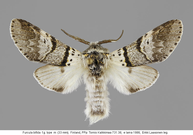 | Nykyinen voimassa oleva lajinimi - (Kullberg et. al. 2002): Furcula Lamarck, 1816 bifida (Brahm, 1787) | ||||||||||||||||||||||