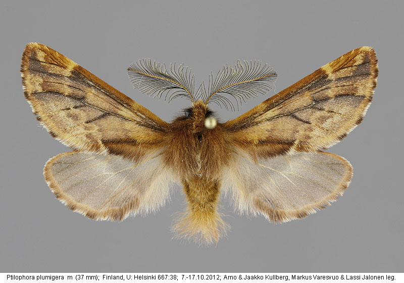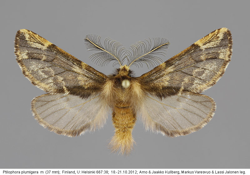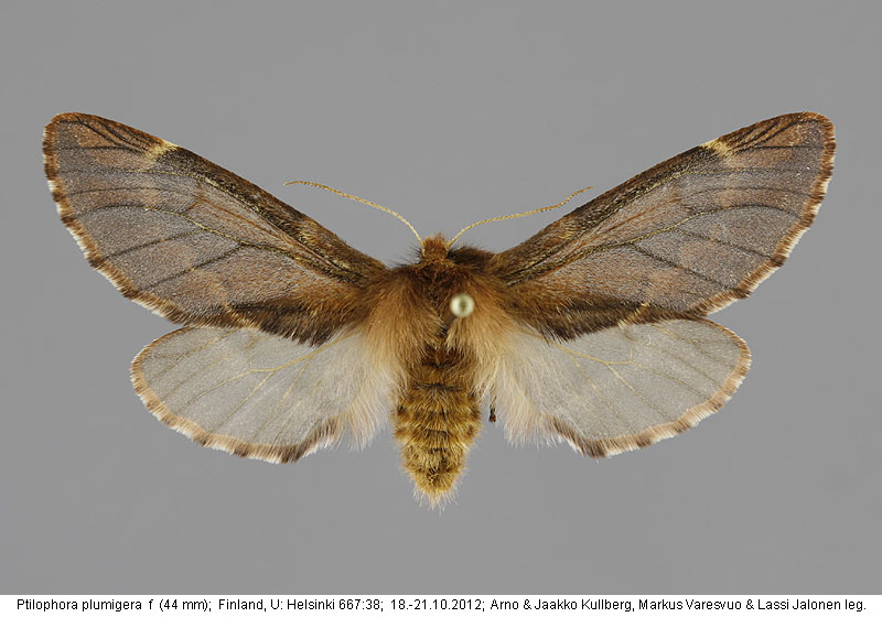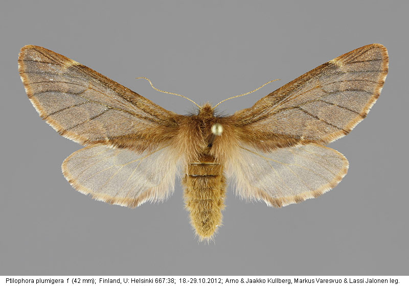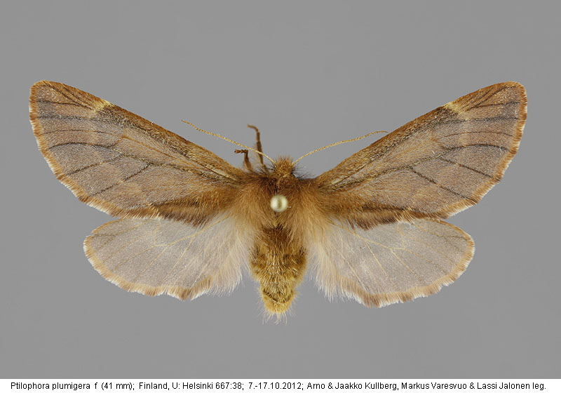 | Nykyinen voimassa oleva lajinimi - (Kullberg et. al. 2002): Ptilophora Stephens, 1828 plumigera (Denis & Schiffermüller, 1775) | ||||||||||||||