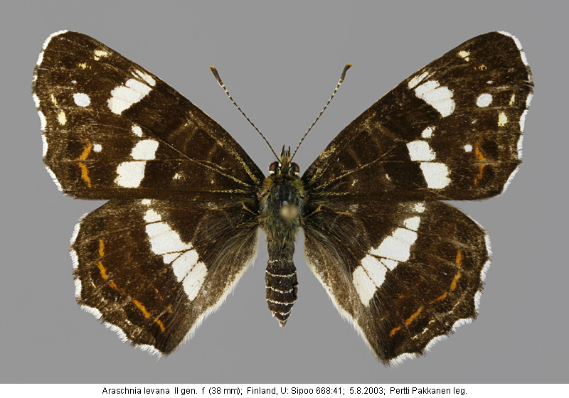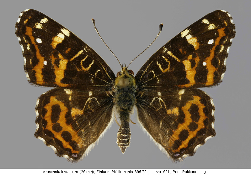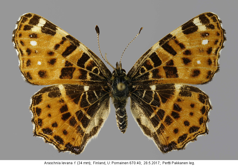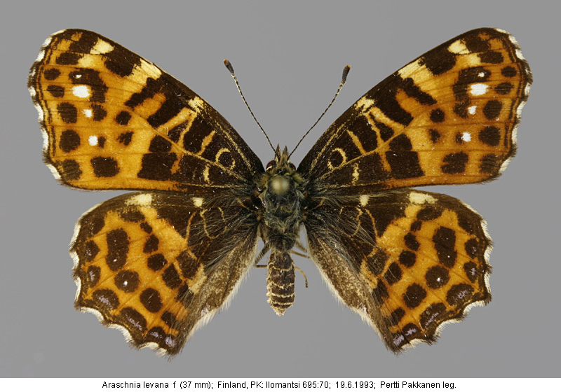 | Suomesta saaduiksi on ilmoitettu seuraavat muodot (alkuperäiset nimet): Araschnia levana f. porima - (Silvonen et.al. 2014). - kesäpolvien yksilöissä voi kehittyä välimuotoa, jossa on sekä oranssia että hyvin tummaa pohjaväriä. | ||||||||||||||||||||||