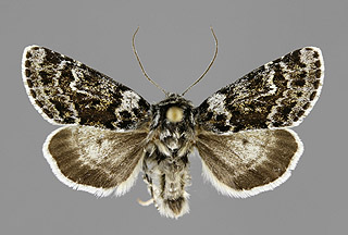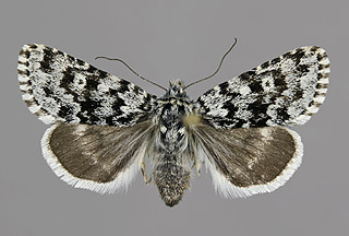 Anarta melanopa, rakkayökkönen kuuluu tarhayökkösiin (Noctuidae, Noctuinae, Hadenini)