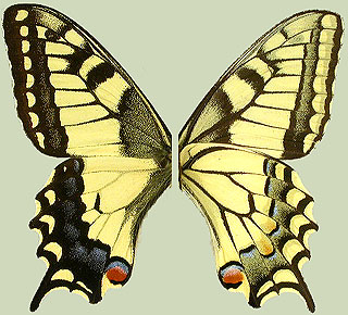 - suuri, helposti tunnistettava, pohjaväriltään kirkkaan keltainen perhonen