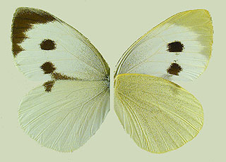 - suuri, helposti tunnistettava, pohjaväriltään valkoinen perhonen
