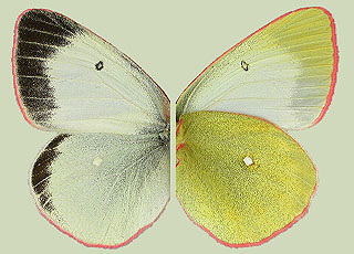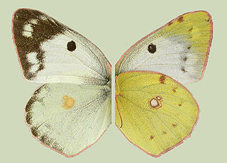 - etusiipien ulkoreuna koko pituudeltaan leveälti musta ilman valkoisia täpliä, - vertaa C.hyale ja muut kaaliperhossuvut
