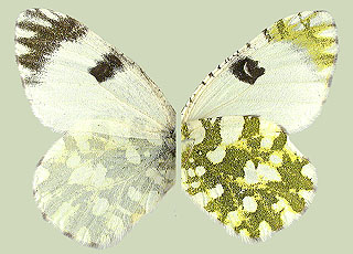 - etusiiven musta keskitäplä suhteellisen pieni, kaukana erossa etureunasta, ilman valkoista keskusta, vertaa Pontia ja Eucloe -lajit