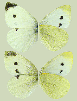 - siivet valkoiset, suonet harmahtavat, - vertaa P.brassicae ja P.rapae