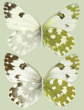 - takasiipien alapuoli sekavan kirjava, vaihteleva, vertaa Pontia -lajit