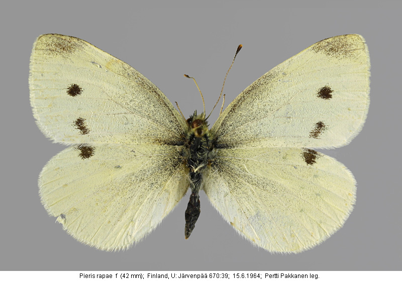 | Suomesta saaduiksi on ilmoitettu seuraavat muodot (alkuperäiset nimet): Pieris rapae gen. vern. metra Steph. - (Valle 1935). - kevätsukupolvi. - siipien täplät pienemmät ja epäselvemmät kuin kesäsukupolvella. - takasiivet alta keltaisemmat kuin kesäsukupolvella. Pieris rapae gen. aest. aestiva Zell. - (Valle 1935). - kesäsukupolvi. Pieris rapae ab. flavescens Röb. - (Valle 1935). - naaras, jonka siivet yläpinnastaan selvästi kellervät. Pieris rapae f. flavescens Röb. - (Saalas 1936). - K.J.Valle näytti 2.5.1935 Suomen Eläin- ja Kasvitieteellisen Seuran Vanamon kokouksessa. - keltainen naurisperhonen, saatu Turusta. Pieris rapae f. flavescens Röb. - (Valle 1936). - maalle uusi naurisperhosen muunnos Turusta. - kehittynyt erään keittiön säiliössä. Pieris rapae kellertävä. - (Valle 1949). - Henrik Bruun näytti 9.2.1949 Hyönteistieteellisen kerhon kokouksessa. - kellertävä värimuunnos. | ||||||||||||||||||||||||||||||