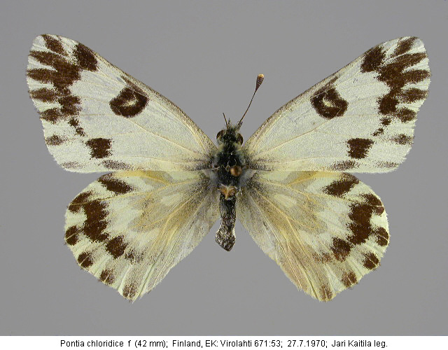 | Kirjallisuus: | 1970; Kalevi KEYNÄS & Kauri MIKKOLA Pontia daplidice - Euchloë chloridice - vaellus. 1970 Suomen Perhostutkijain Seuran kiertokirje 6/70:liite. |