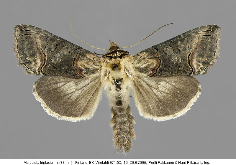 | Nykyinen voimassa oleva lajinimi - (Kullberg et. al. 2002): Abrostola Ochsenheimer, 1816 triplasia (Linnaeus, 1758) | ||||||||||||||